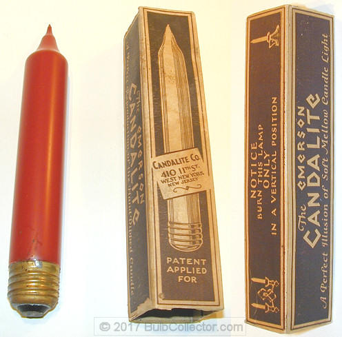 Candalite Co. 410 11th St. West New York New Jersey Patent Applied For side 3: NOTICE BURN THIS LAMP ONLY IN A VERTICAL POSITION
