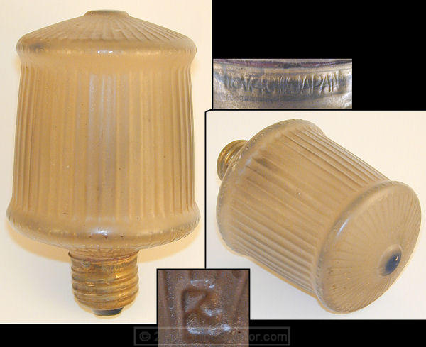 Aubrey Sanford was granted a design patent on August 27th, 1929 for the design of a lantern shaped incandescent lamp. It is believed that the lamp shown here was based on Sanford’s United States design patent. "RL" is embossed into the glass on the underside of the lantern, meaning unknown? |